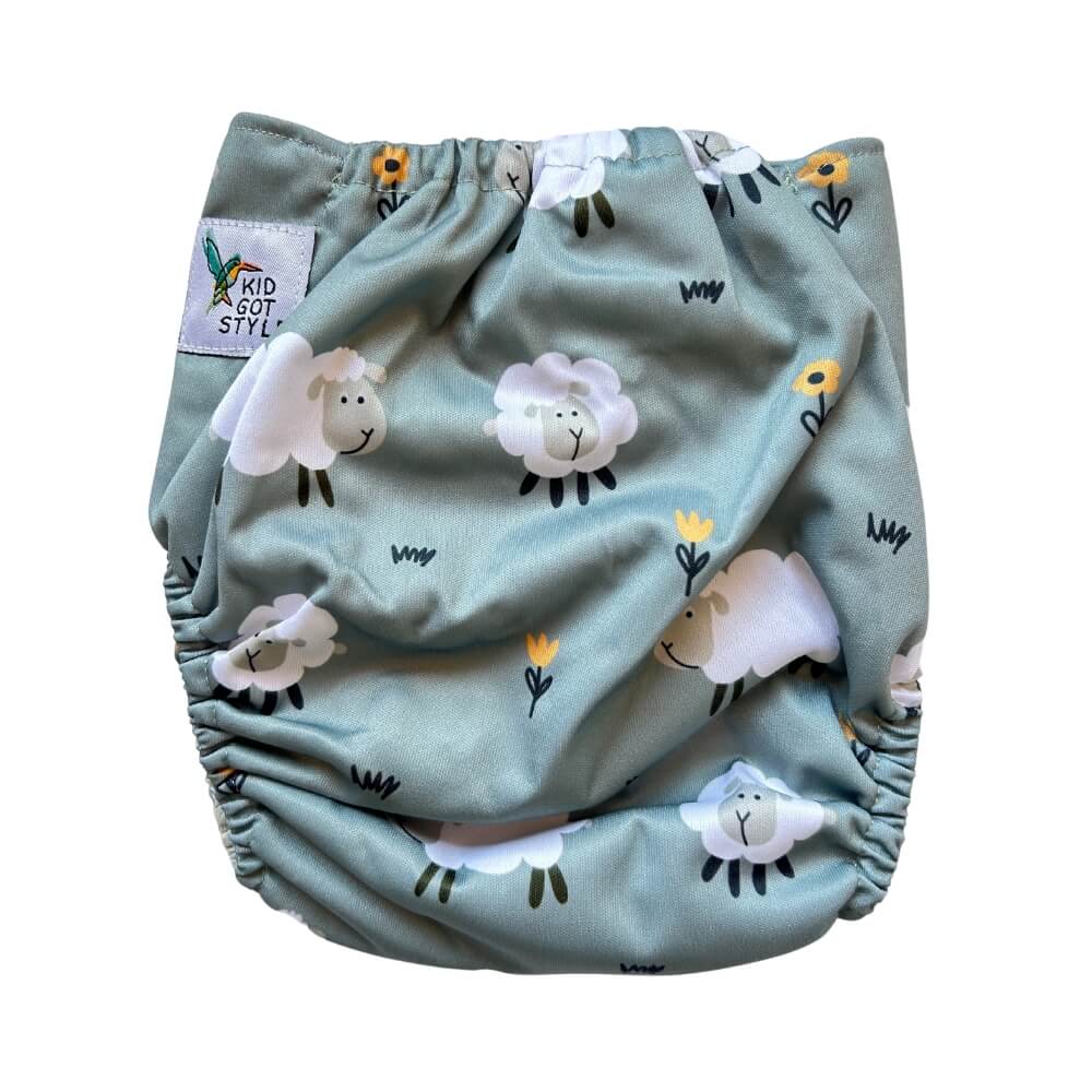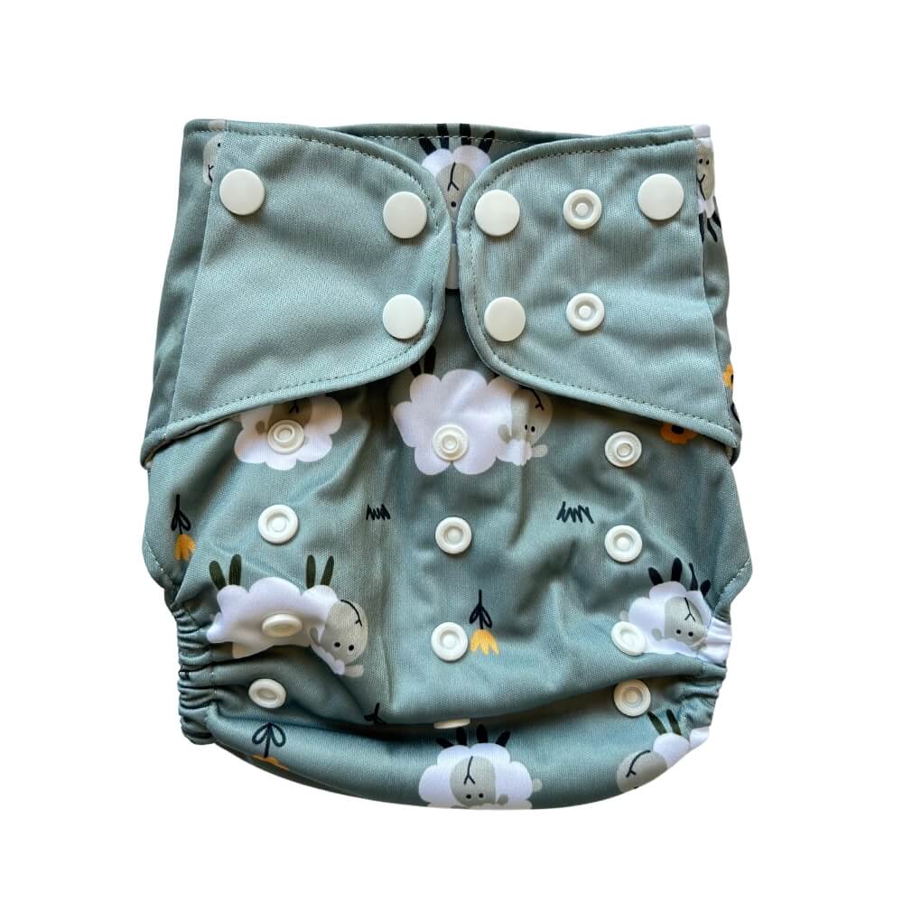 The Counting Sheep nappy will fit your baby from 5 kg – 15 kg.