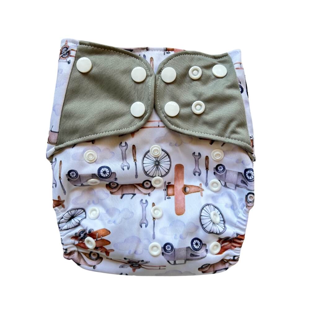 This pocket nappy has a grey athletic wicking jersey inner lining. This helps to keep your baby dry even when they wet the nappy, as it wicks moisture away from the bum.