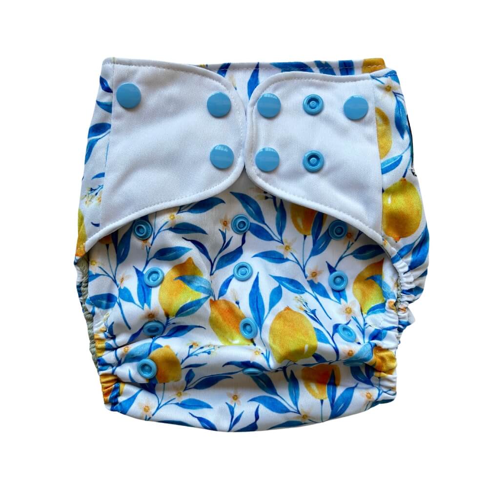 The Lemon Meringue nappy will fit your baby from 5 kg – 15 kg.