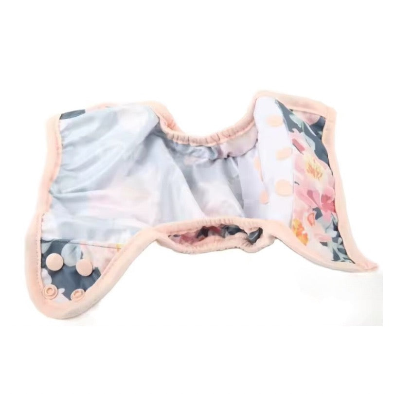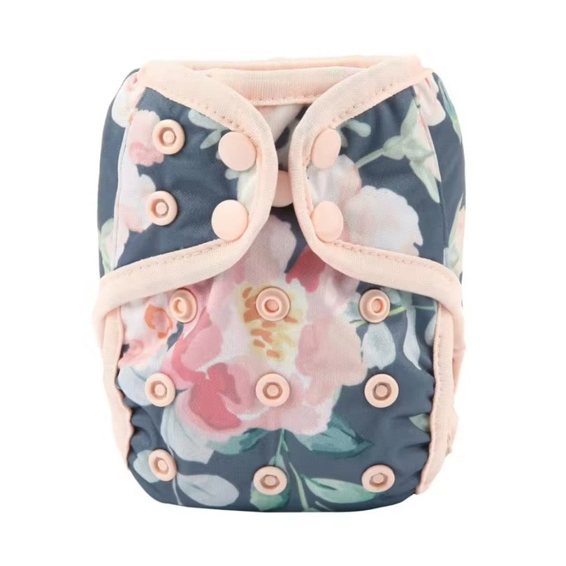 They’re made from PUL, a waterproof fabric, and feature a double gusset to help keep the mess in the nappy.