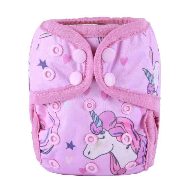They’re made from PUL, a waterproof fabric, and feature a double gusset to help keep the mess in the nappy.